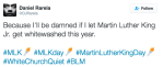 the-movemnt: Artist Daniel Rarela creates “Letter from a Birmingham Jail” memes to stop people from whitewashing MLK follow @the-movemnt Share this: Click to share on X (Opens in new window) X Click to share on Facebook (Opens in new window) Facebook Like Loading... Related Published by amhrancas Profile pic by meru90 View all posts by amhrancas