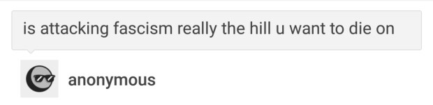 reblog if attacking fascism is really the hill you want to die on