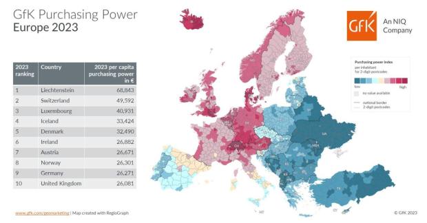 Purchasing Power (Salary after Costs and Taxes) of Europe, 2023.