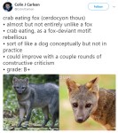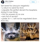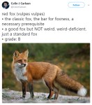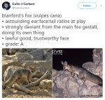 As you can see I am willing to accept correction on my flawed statements with humility, although I note that didn’t say that he was a fox expert either – just that he was using very correct accurate appropriate language for his shitpost. However. Thank you all for holding me accountable. This post addition is 2,631 days old and the notes indicate it has always bothered some people so I’m glad I can at least repair something of the seven years of damage I have caused