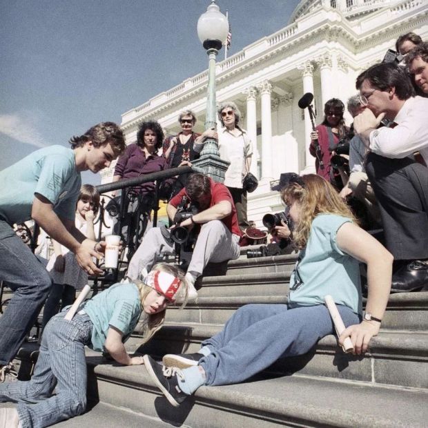 On 12 March 1990, dozens of disabled people descended on the US Capitol and carried out a protest which became known as the Capitol Crawl. Participants were protesting against the stalling of a proposed law, the Americans with Disabilities Act (ADA), which would prohibit discrimination against disabled people.